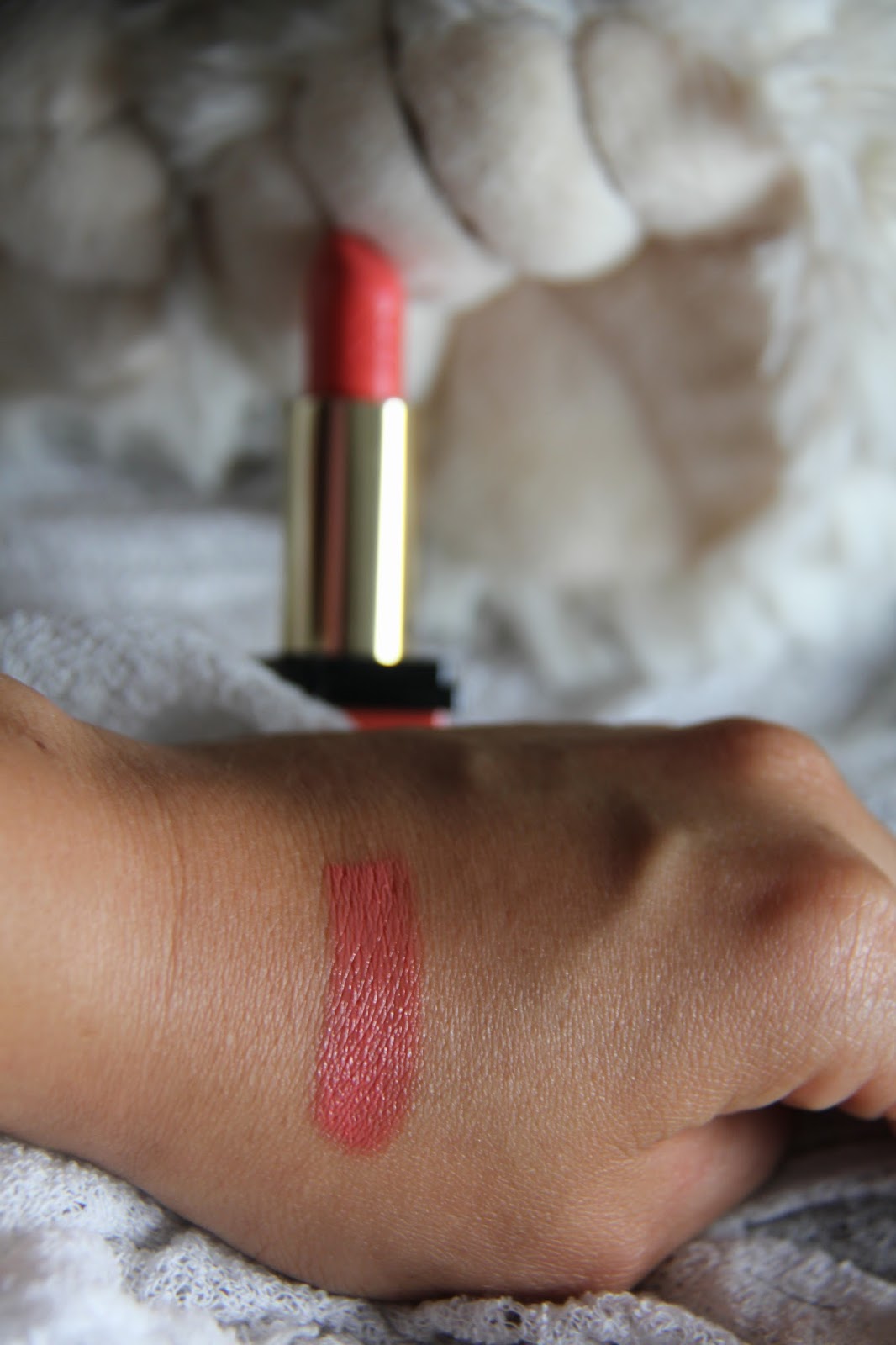 De lippenstift dekt mooi in 1 laagje wat al verraad dat de pigmentatie goed is. Ook de kleur is helemaal wat ik zoek, een echte koraalkleur deze keer.